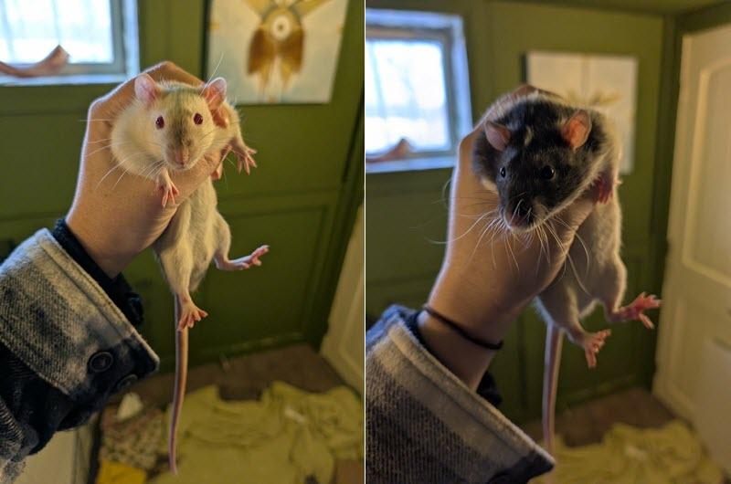 Brothers Orion and Odin are estimated to be born at the beginning of October 2025. They are the results of an oops liter when their previous owner thought it would be ok to have her male rat and female rats have “supervised” playdates. Surprise! They still got pregnant.
