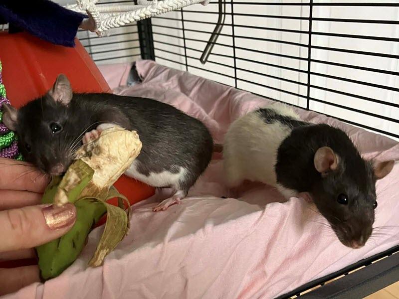 Both ladies are super curious and adventurous! They love to climb their nearest human and are always begging to come out to play. They aren’t the biggest fans of being picked up, but are more then happy to run all over you and to perch on your shoulders when offered the higher up perch.