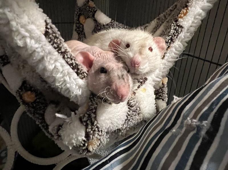If you’re interest in adopting these boys, you must be aware that hairless rats are more prone to certain genetic issues, such as eye infections, cysts, ingrown hairs, etc. Proper and prompt veterinary care will be essential if these issues occure.